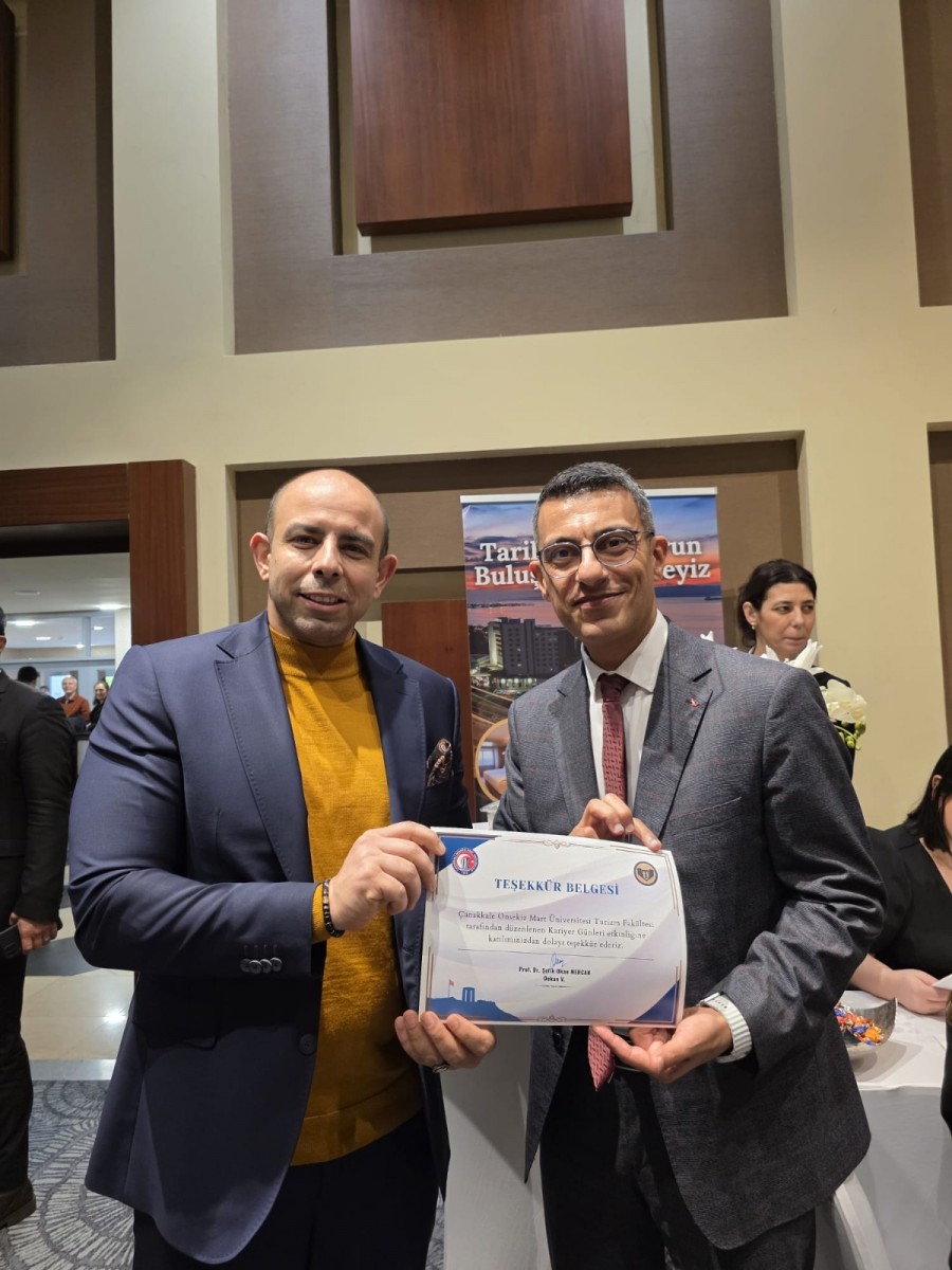 Çanakkale Onsekiz Mart Üniversitesi Turizm Fakültesi tarafından geleneksel hale gelen Kariyer Günü Etkinliklerinin 14.’sü, 12 Şubat 2026 tarihinde Kolin Hotel ev sahipliğinde yoğun bir katılımla gerçekleştirildi. Kariyer gününe Çanakkale Onsekiz Mart Üniversitesi Rektör Yardımcısı Prof. Dr. Arda AYDIN, Çanakkale İl Kültür ve Turizm Müdürü Çağman ESİRGEMEZ, Müdür Yardımcıları Hüseyin ŞEVİK ve Pelin CENGİZ, ÇATOD, ÇARO gibi kuruluşların yetkilileri katıldı. Turizm Fakültesi Dekanı Prof. Dr. Şefik Okan MERCAN, bu yıl 70’e yakın işletmenin destek verdiği Turizm Fakültesi Kariyer Günü etkinliğine; 47 otel işletmesinin, 5 seyahat acentasının, 3 yiyecek içecek işletmesinin, 2 yurt dışı eğitim ve danışmanlık şirketinin, Çanakkale Bölgesel Turist Rehberleri Odasının, Çanakkale Turistik Otelciler İşletmeciler ve Yatırımcılar Derneğinin, Assos Otelciler Derneğinin ve diğer işletmelerin katılım gösterdiğini ifade etti. Kariyer Günleri etkinliğinin, ikinci kez Kolin Hotel’de gerçekleştirildiğini ve bu durumdan işletmelerin oldukça memnun olduklarını, bu etkinliğin Üniversitemizde turizm eğitimi verilen tüm bölümlerin katılımıyla gerçekleştiğini söyledi. Bu yıl etkinliğe ilk kez Çanakkale Kepez Turizm Mesleki ve Teknik Anadolu Lisesi öğrencileri ve öğretmenleri de katılım sağladı. Katılımcılara, teşekkür belgeleri ve Turizm Fakültesi Gastronomi ve Mutfak Sanatları Öğretim elemanı Emre MÜMİN ve öğrencileri tarafından hazırlanan Çanakkale’ye özgü tatlılar ikram edildi. Kariyer Günü ile sektör temsilcileri ve öğrenciler ortak bir platformda buluşarak başta turizm öğrencileri olmak üzere birçok öğrenciye iş ve staj olanağı yaratılmış oldu. Prof. Dr. Şefik Okan MERCAN, Kariyer Günü etkinliğine destek veren; tüm katılımcılara, sponsorlara, Turizm Fakültesinin akademik, idari personeline ve öğrencilerine, Kolin Hotel’e teşekkür ederek sözlerini tamamladı.